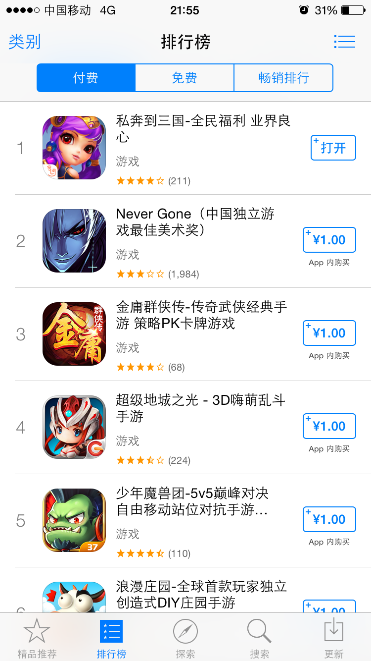 典將《私奔到三國》手游登頂AppStore排行榜